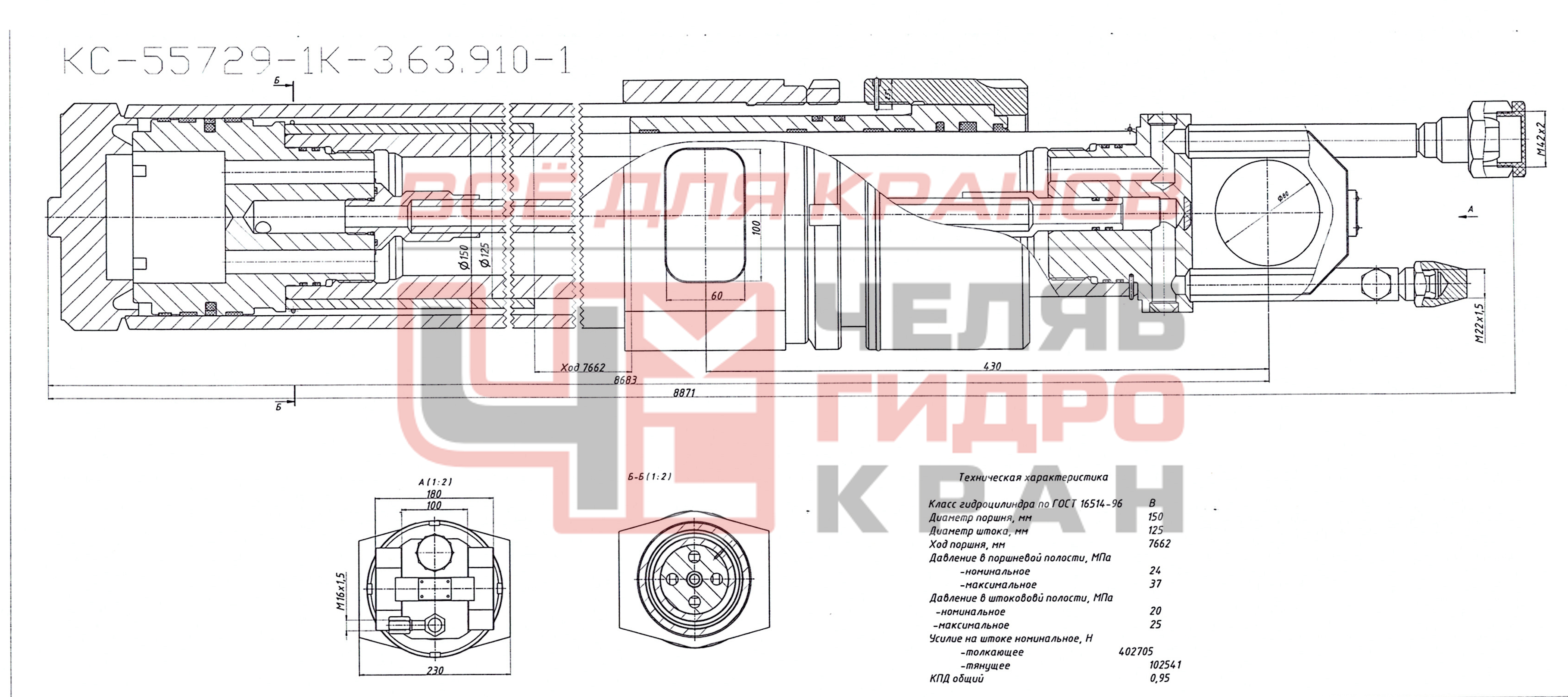 Гидроцилиндр выдвижения стрелы КС-55729-1К-3.63.910 1 -01 150.125х7662